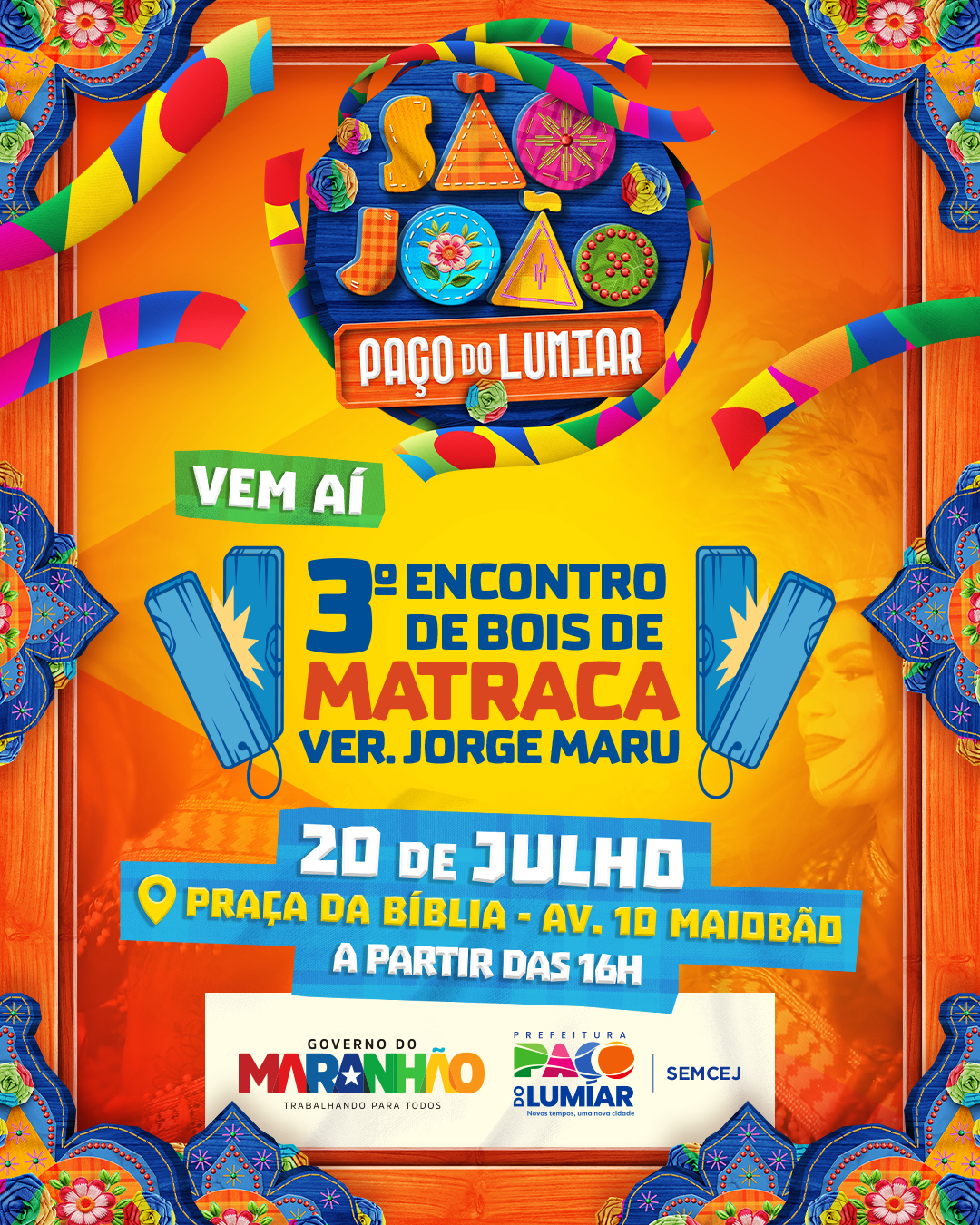 O clima junino vai tomar conta de Paço do Lumiar no próximo dia 20 de julho com a realização do 3º Encontro de Bois de Matraca, um evento que já faz parte do calendário cultural do município e promete reunir tradição, emoção e muita alegria na Praça da Bíblia, localizada na Avenida 10 do Maiobão, a partir das 16h.