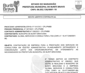 A empresa citada nas denúncias é a Global Serviços e Consultoria Ltda, inscrita no CNPJ nº 15.470.460/0001-88, que, segundo as informações, mantém contratos com o município de Buriti Bravo desde 2024, por meio de renovações sucessivas de aditivos contratuais. A soma desses contratos, ainda conforme os dados divulgados, pode chegar a quase R$ 1 milhão por ano.
