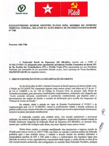 “A Federação constitui uma entidade única, com atuação parlamentar e processual unificada, nos termos da legislação vigente, o que torna ilegítima e inadmissível a atuação isolada do PCdoB”, justifica trecho do documento.