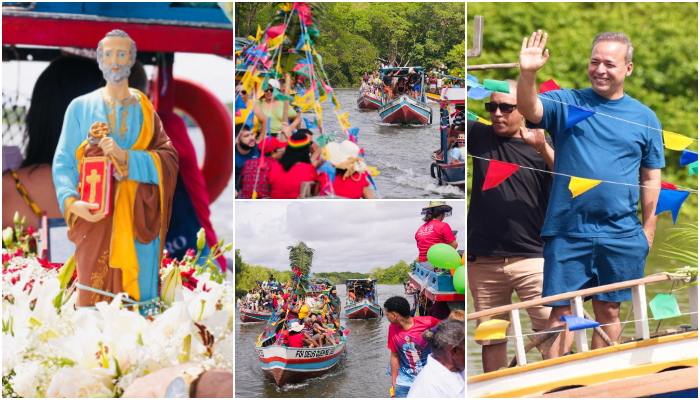 Neste domingo (29), o prefeito de Paço do Lumiar, Fred Campos, participou da tradicional procissão marítima em homenagem a São Pedro, uma das manifestações religiosas mais importantes da região. A procissão teve início no Porto de Mocajutuba e seguiu até o Porto de Salinas, reunindo dezenas de embarcações que navegaram em um clima de fé, devoção e celebração.